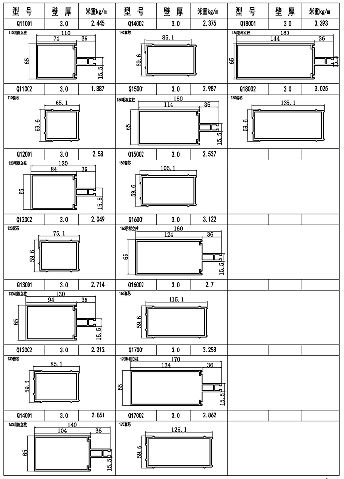 明框幕墻主框、套芯型材圖