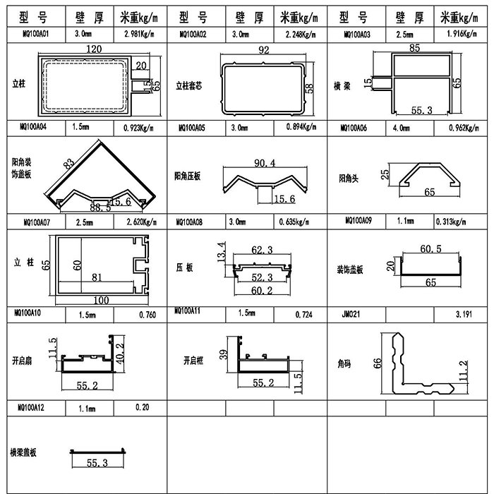 MQ100A系列明框幕墻