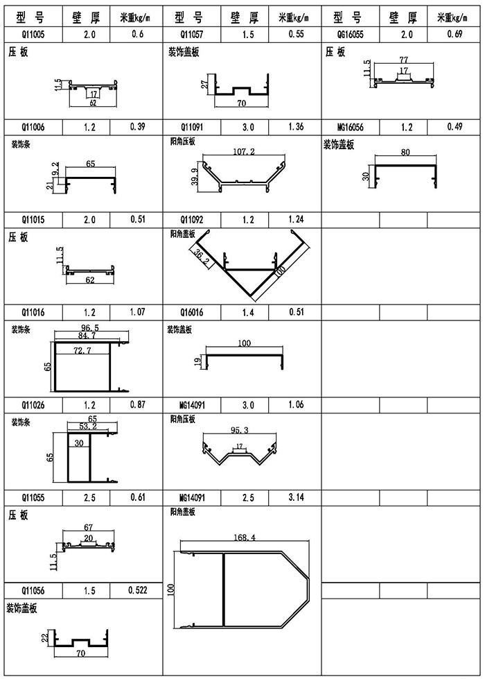 明框幕墻裝飾蓋板、壓板型材圖