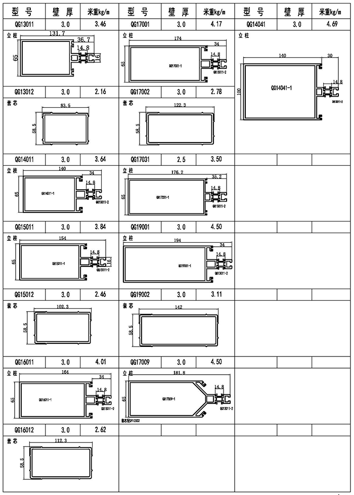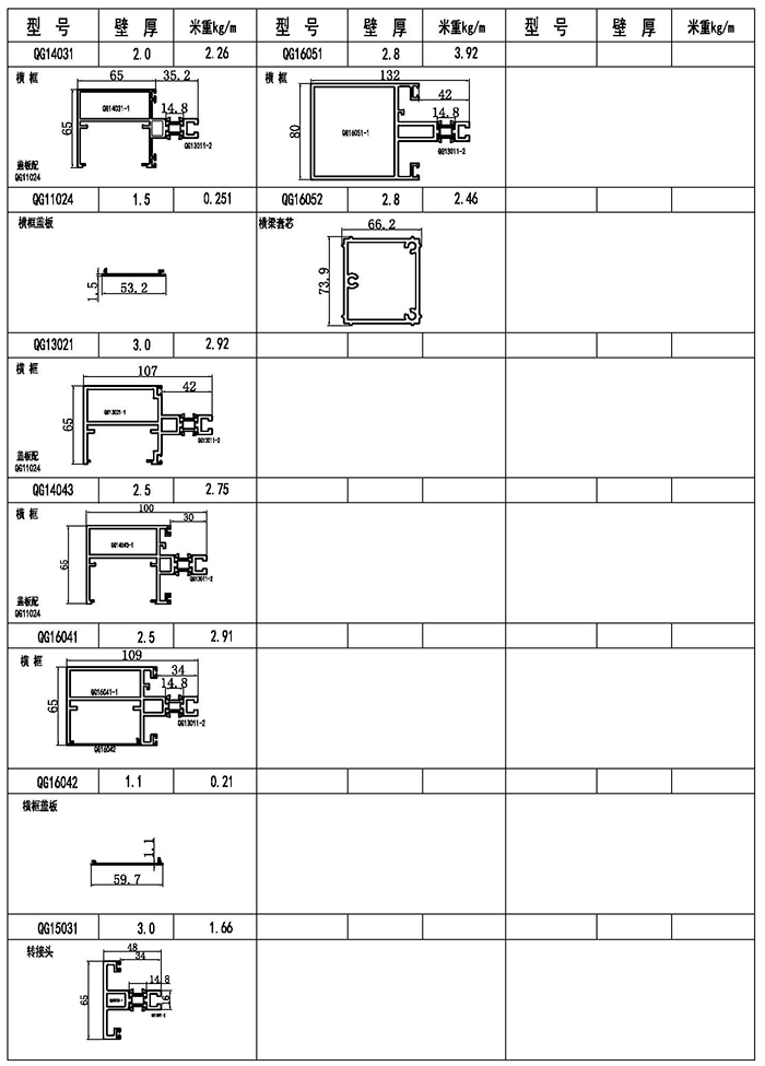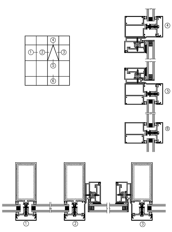 斷橋明框幕墻橫梁、橫梁蓋板型材圖