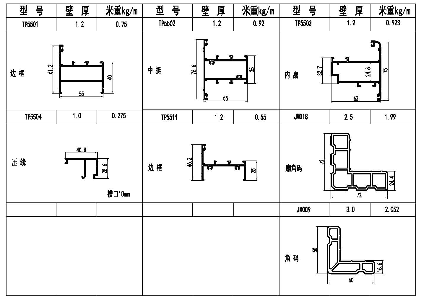 TP55系列平開窗型材圖